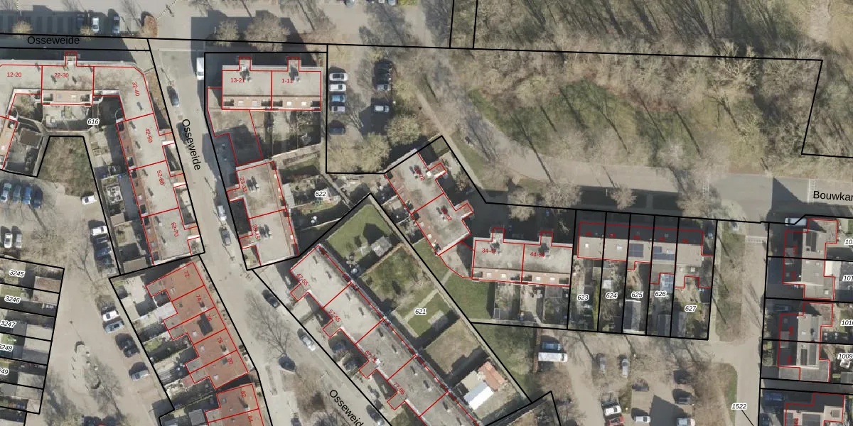 Het perceel waarop Bouwkamp 30 staat heeft een oppervlakte van 2549 m². Dit is een zeer groot perceel. De perceeloppervlakte wordt geregistreerd door het Kadaster. Gedetailleerde informatie over de maten van dit perceel kunt u vinden in het rapport Kadastrale kaart met maatvoering van Bouwkamp 30.