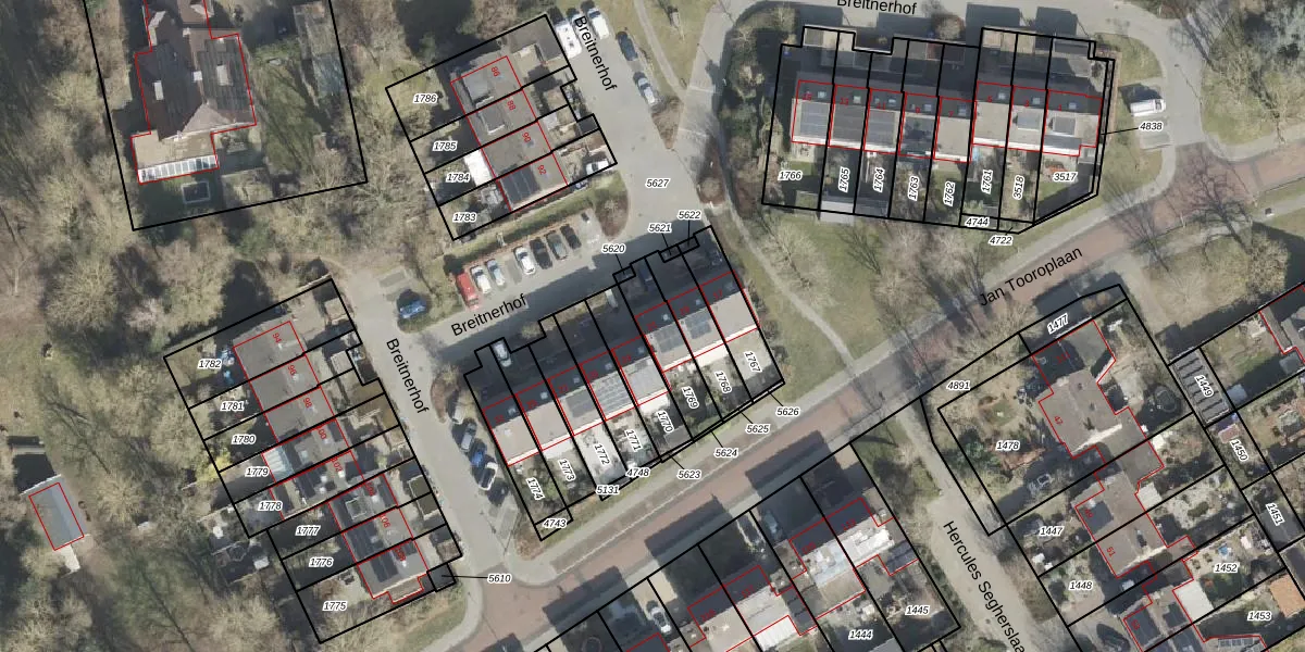 Gebruik de zoekbalk of klik op een perceel voor informatie over de adressen binnen dit perceel.