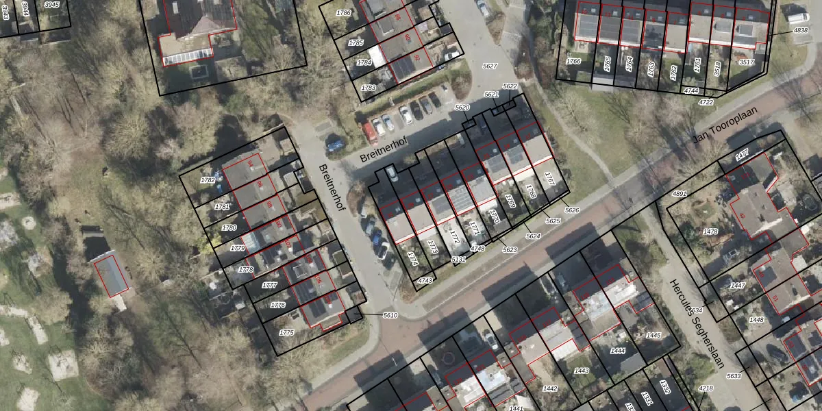 Gebruik de zoekbalk of klik op een perceel voor informatie over de adressen binnen dit perceel.