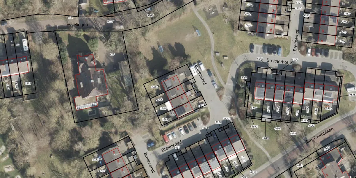 Gebruik de zoekbalk of klik op een perceel voor informatie over de adressen binnen dit perceel.