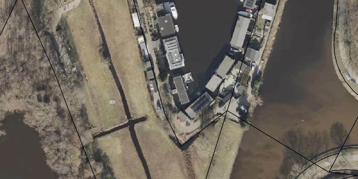 Het perceel waarop Bunskamp 11 staat heeft een oppervlakte van 2,0 ha. Dit is een zeer groot perceel. De perceeloppervlakte wordt geregistreerd door het Kadaster. Gedetailleerde informatie over de maten van dit perceel kunt u vinden in het rapport Kadastrale kaart met maatvoering van Bunskamp 11.