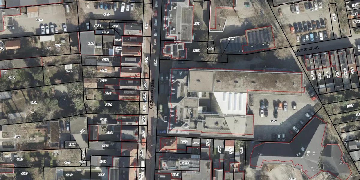 Het perceel waarop Catharinastraat 17-20 staat heeft een oppervlakte van 3827 m². Dit is een zeer groot perceel. De perceeloppervlakte wordt geregistreerd door het Kadaster. Gedetailleerde informatie over de maten van dit perceel kunt u vinden in het rapport Kadastrale kaart met maatvoering van Catharinastraat 17-20.