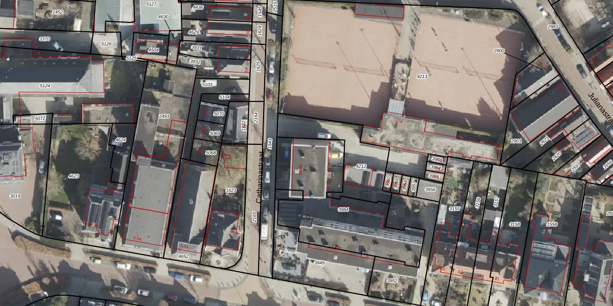 Het perceel waarop Catharinastraat 33 staat heeft een oppervlakte van 1050 m². Dit is een zeer groot perceel. De perceeloppervlakte wordt geregistreerd door het Kadaster. Gedetailleerde informatie over de maten van dit perceel kunt u vinden in het rapport Kadastrale kaart met maatvoering van Catharinastraat 33.