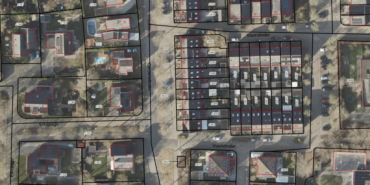 Het perceel waarop Citroenvlinder 106 staat heeft een oppervlakte van 162 m². Dit is een middelgroot perceel. De perceeloppervlakte wordt geregistreerd door het Kadaster. Gedetailleerde informatie over de maten van dit perceel kunt u vinden in het rapport Kadastrale kaart met maatvoering van Citroenvlinder 106.