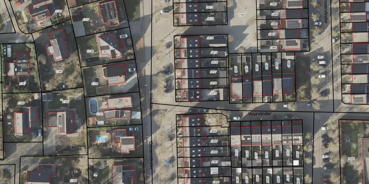 Het perceel waarop Citroenvlinder 118 staat heeft een oppervlakte van 198 m². Dit is een middelgroot perceel. De perceeloppervlakte wordt geregistreerd door het Kadaster. Gedetailleerde informatie over de maten van dit perceel kunt u vinden in het rapport Kadastrale kaart met maatvoering van Citroenvlinder 118.