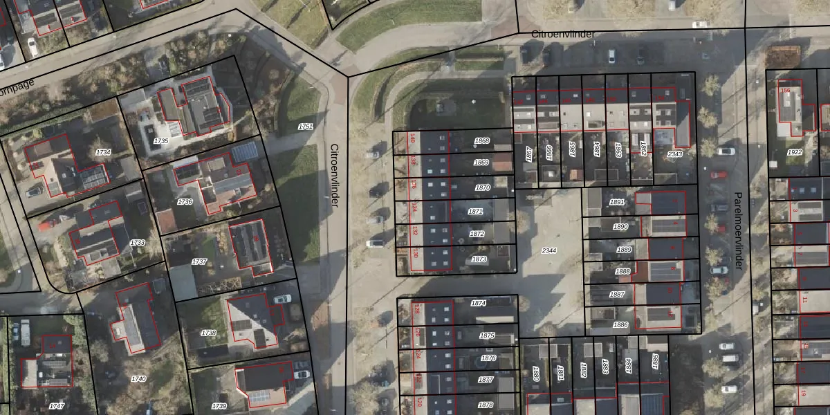 Het perceel waarop Citroenvlinder 134 staat heeft een oppervlakte van 161 m². Dit is een middelgroot perceel. De perceeloppervlakte wordt geregistreerd door het Kadaster. Gedetailleerde informatie over de maten van dit perceel kunt u vinden in het rapport Kadastrale kaart met maatvoering van Citroenvlinder 134.