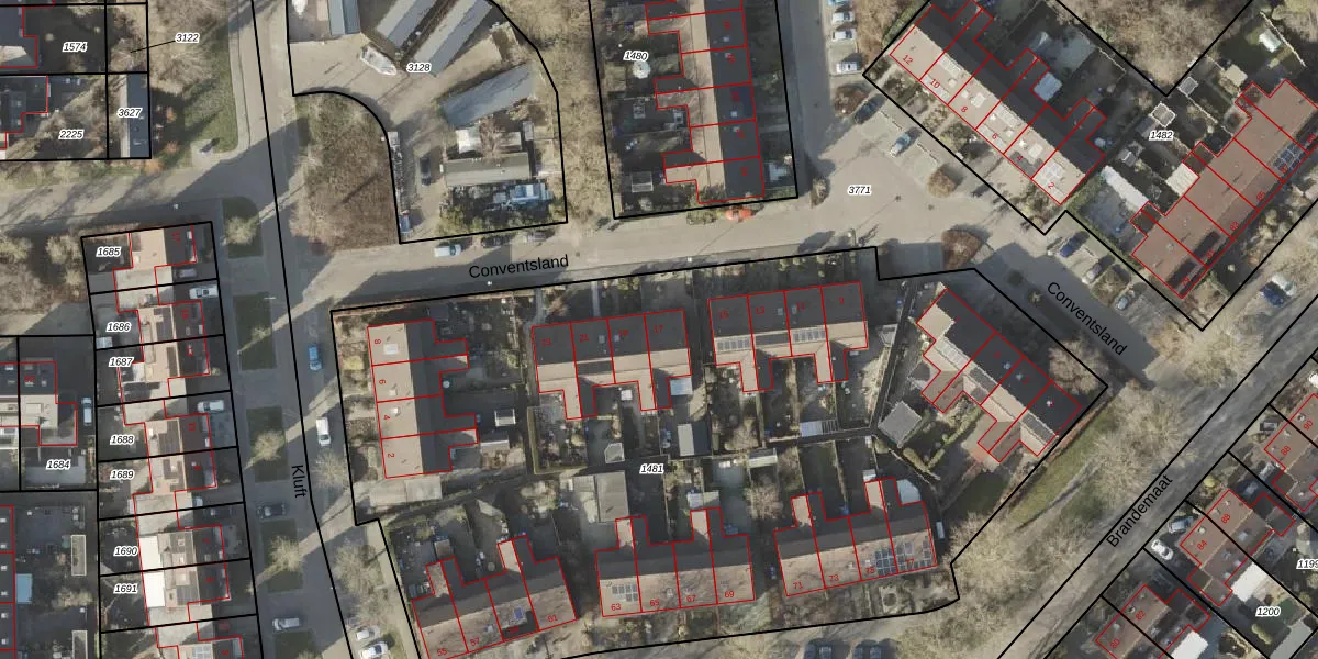 Het perceel waarop Conventsland 17 staat heeft een oppervlakte van 5550 m². Dit is een zeer groot perceel. De perceeloppervlakte wordt geregistreerd door het Kadaster. Gedetailleerde informatie over de maten van dit perceel kunt u vinden in het rapport Kadastrale kaart met maatvoering van Conventsland 17.