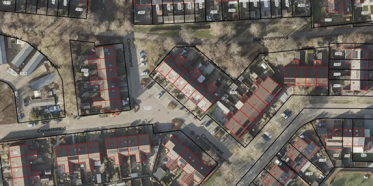Het perceel waarop Conventsland 6 staat heeft een oppervlakte van 2815 m². Dit is een zeer groot perceel. De perceeloppervlakte wordt geregistreerd door het Kadaster. Gedetailleerde informatie over de maten van dit perceel kunt u vinden in het rapport Kadastrale kaart met maatvoering van Conventsland 6.