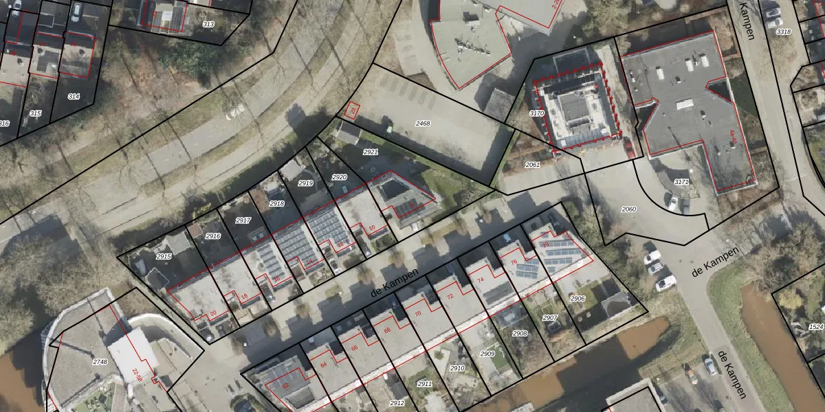 Het perceel waarop de Kampen 8 staat heeft een oppervlakte van 527 m². Dit is een groot perceel. De perceeloppervlakte wordt geregistreerd door het Kadaster. Gedetailleerde informatie over de maten van dit perceel kunt u vinden in het rapport Kadastrale kaart met maatvoering van de Kampen 8.