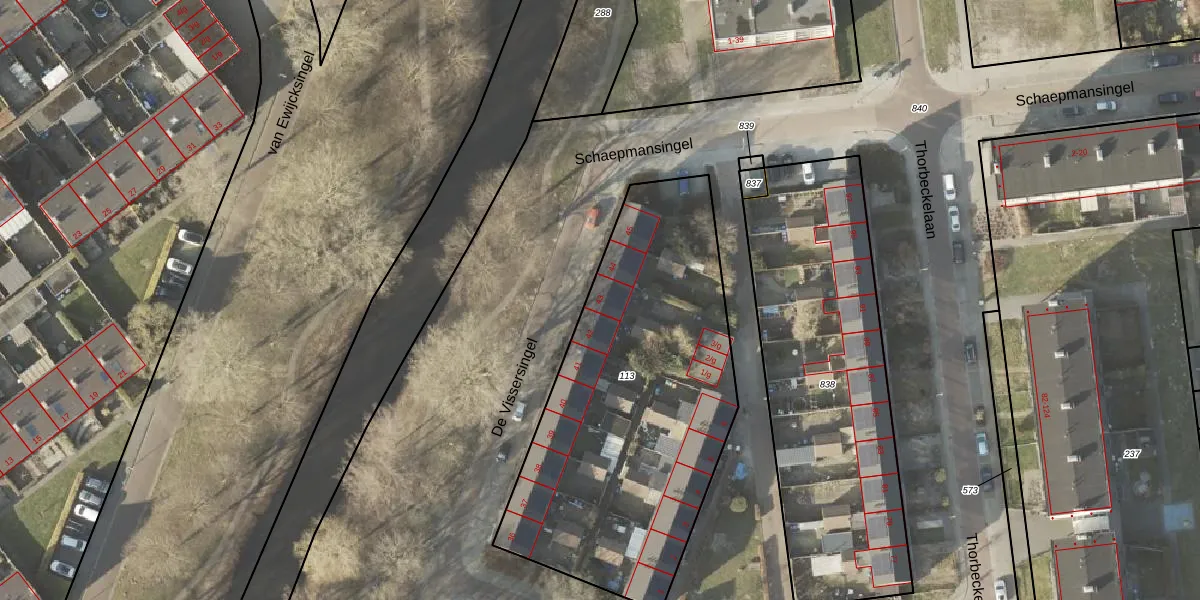 Het perceel waarop De Vissersingel 43 staat heeft een oppervlakte van 1785 m². Dit is een zeer groot perceel. De perceeloppervlakte wordt geregistreerd door het Kadaster. Gedetailleerde informatie over de maten van dit perceel kunt u vinden in het rapport Kadastrale kaart met maatvoering van De Vissersingel 43.