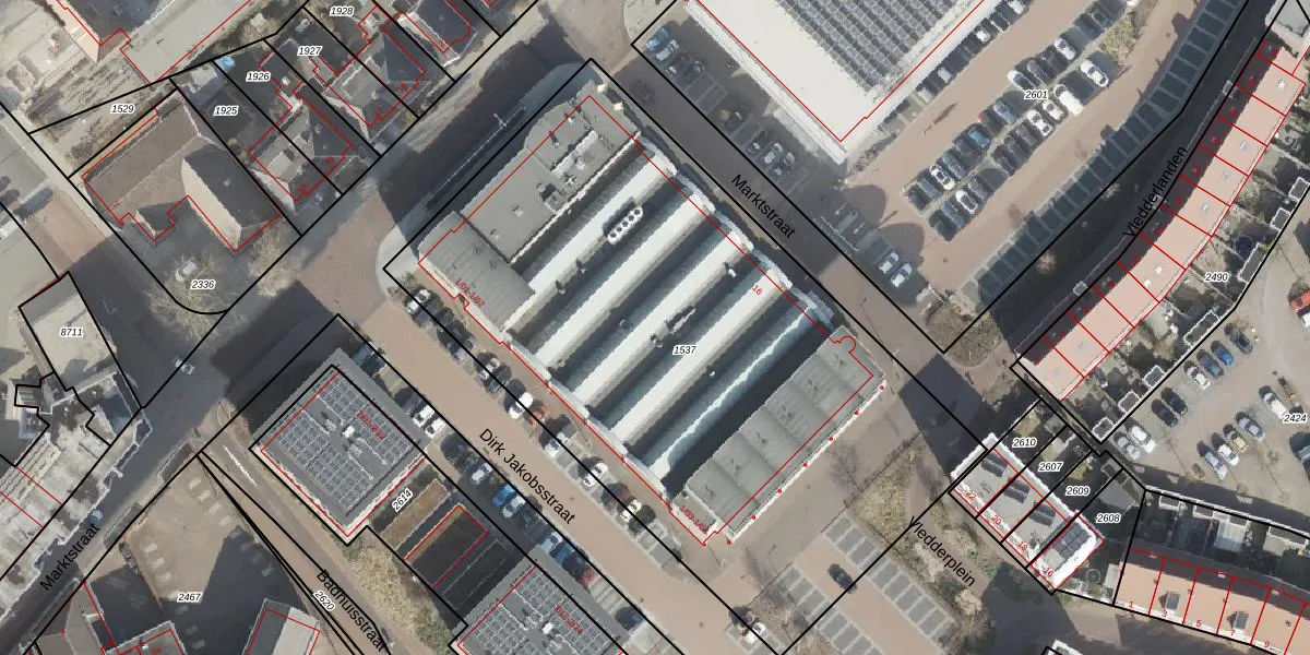 Het perceel waarop Dirk Jakobsstraat 1-03 staat heeft een oppervlakte van 3825 m². Dit is een zeer groot perceel. De perceeloppervlakte wordt geregistreerd door het Kadaster. Gedetailleerde informatie over de maten van dit perceel kunt u vinden in het rapport Kadastrale kaart met maatvoering van Dirk Jakobsstraat 1-03.