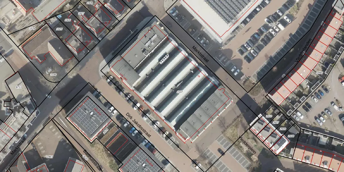 Het perceel waarop Dirk Jakobsstraat 1-08 staat heeft een oppervlakte van 3825 m². Dit is een zeer groot perceel. De perceeloppervlakte wordt geregistreerd door het Kadaster. Gedetailleerde informatie over de maten van dit perceel kunt u vinden in het rapport Kadastrale kaart met maatvoering van Dirk Jakobsstraat 1-08.