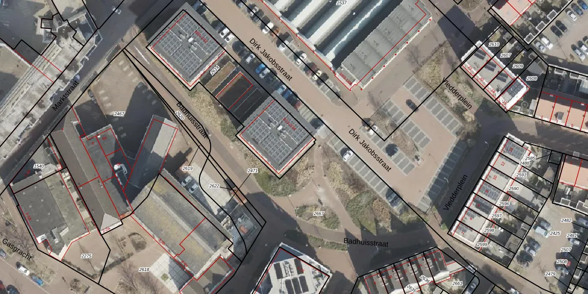 Het perceel waarop Dirk Jakobsstraat 2-21 staat heeft een oppervlakte van 1070 m². Dit is een zeer groot perceel. De perceeloppervlakte wordt geregistreerd door het Kadaster. Gedetailleerde informatie over de maten van dit perceel kunt u vinden in het rapport Kadastrale kaart met maatvoering van Dirk Jakobsstraat 2-21.