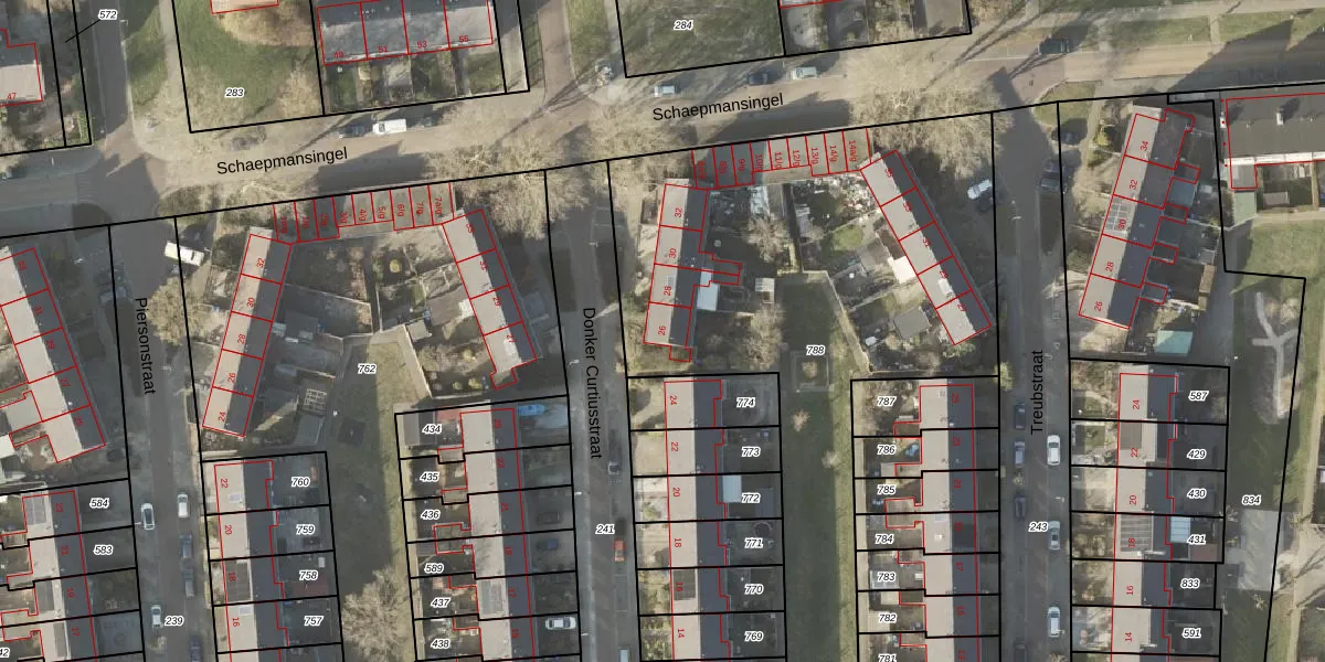 Het perceel waarop Donker Curtiusstraat 26 staat heeft een oppervlakte van 2959 m². Dit is een zeer groot perceel. De perceeloppervlakte wordt geregistreerd door het Kadaster. Gedetailleerde informatie over de maten van dit perceel kunt u vinden in het rapport Kadastrale kaart met maatvoering van Donker Curtiusstraat 26.