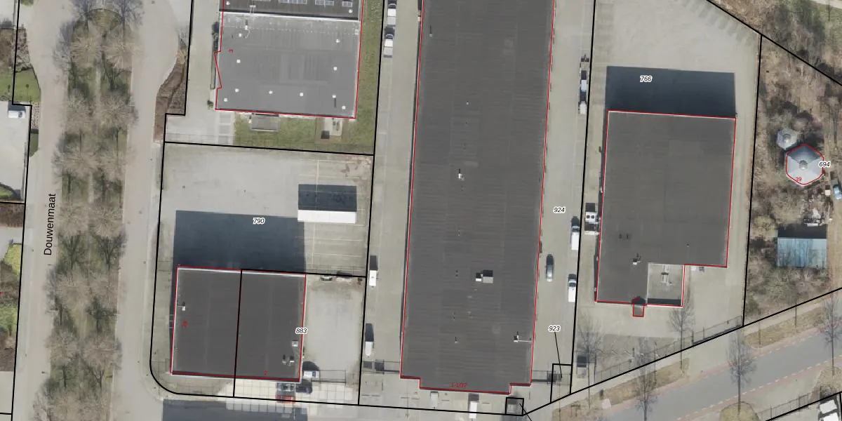 Het perceel waarop Douwenmaat 1-10 staat heeft een oppervlakte van 6403 m². Dit is een zeer groot perceel. De perceeloppervlakte wordt geregistreerd door het Kadaster. Gedetailleerde informatie over de maten van dit perceel kunt u vinden in het rapport Kadastrale kaart met maatvoering van Douwenmaat 1-10.