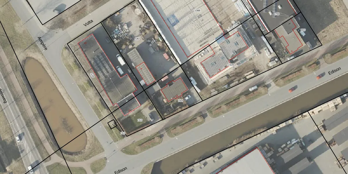 Het perceel waarop Edison 10 staat heeft een oppervlakte van 549 m². Dit is een groot perceel. De perceeloppervlakte wordt geregistreerd door het Kadaster. Gedetailleerde informatie over de maten van dit perceel kunt u vinden in het rapport Kadastrale kaart met maatvoering van Edison 10.