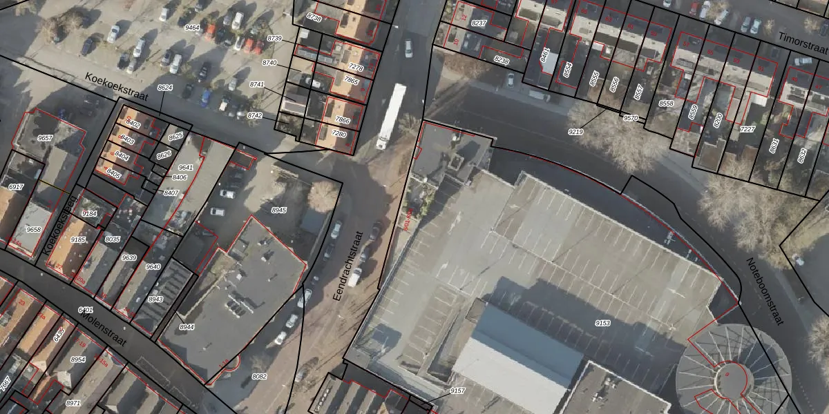 Het perceel waarop Eendrachtstraat 8-04 staat heeft een oppervlakte van 7566 m². Dit is een zeer groot perceel. De perceeloppervlakte wordt geregistreerd door het Kadaster. Gedetailleerde informatie over de maten van dit perceel kunt u vinden in het rapport Kadastrale kaart met maatvoering van Eendrachtstraat 8-04.