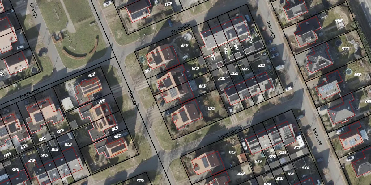 Gebruik de zoekbalk of klik op een perceel voor informatie over de adressen binnen dit perceel.