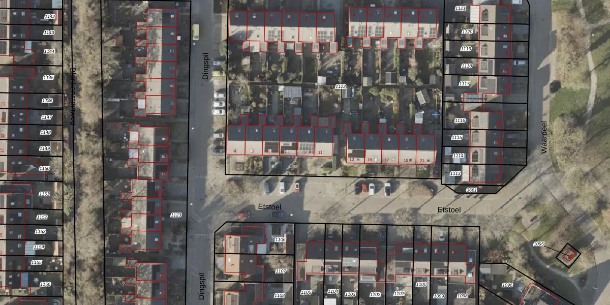 Het perceel waarop Etstoel 9 staat heeft een oppervlakte van 4264 m². Dit is een zeer groot perceel. De perceeloppervlakte wordt geregistreerd door het Kadaster. Gedetailleerde informatie over de maten van dit perceel kunt u vinden in het rapport Kadastrale kaart met maatvoering van Etstoel 9.