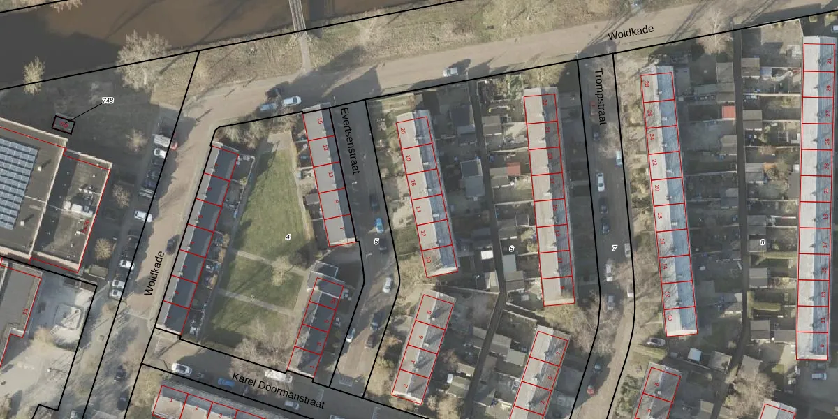 Het perceel waarop Evertsenstraat 14 staat heeft een oppervlakte van 4215 m². Dit is een zeer groot perceel. De perceeloppervlakte wordt geregistreerd door het Kadaster. Gedetailleerde informatie over de maten van dit perceel kunt u vinden in het rapport Kadastrale kaart met maatvoering van Evertsenstraat 14.