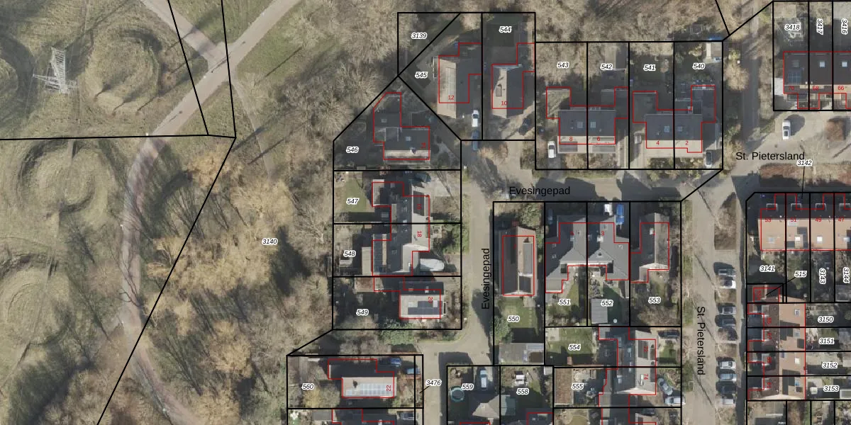 Het perceel waarop Evesingepad 16 staat heeft een oppervlakte van 376 m². Dit is een groot perceel. De perceeloppervlakte wordt geregistreerd door het Kadaster. Gedetailleerde informatie over de maten van dit perceel kunt u vinden in het rapport Kadastrale kaart met maatvoering van Evesingepad 16.