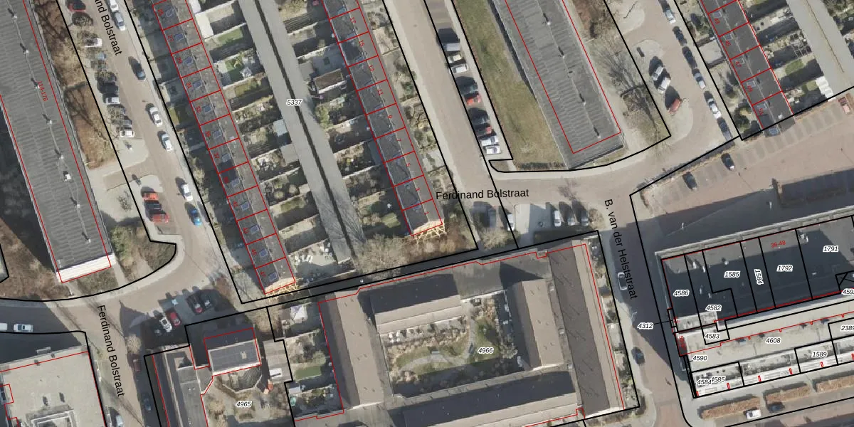 Het perceel waarop Ferdinand Bolstraat 1 staat heeft een oppervlakte van 4945 m². Dit is een zeer groot perceel. De perceeloppervlakte wordt geregistreerd door het Kadaster. Gedetailleerde informatie over de maten van dit perceel kunt u vinden in het rapport Kadastrale kaart met maatvoering van Ferdinand Bolstraat 1.