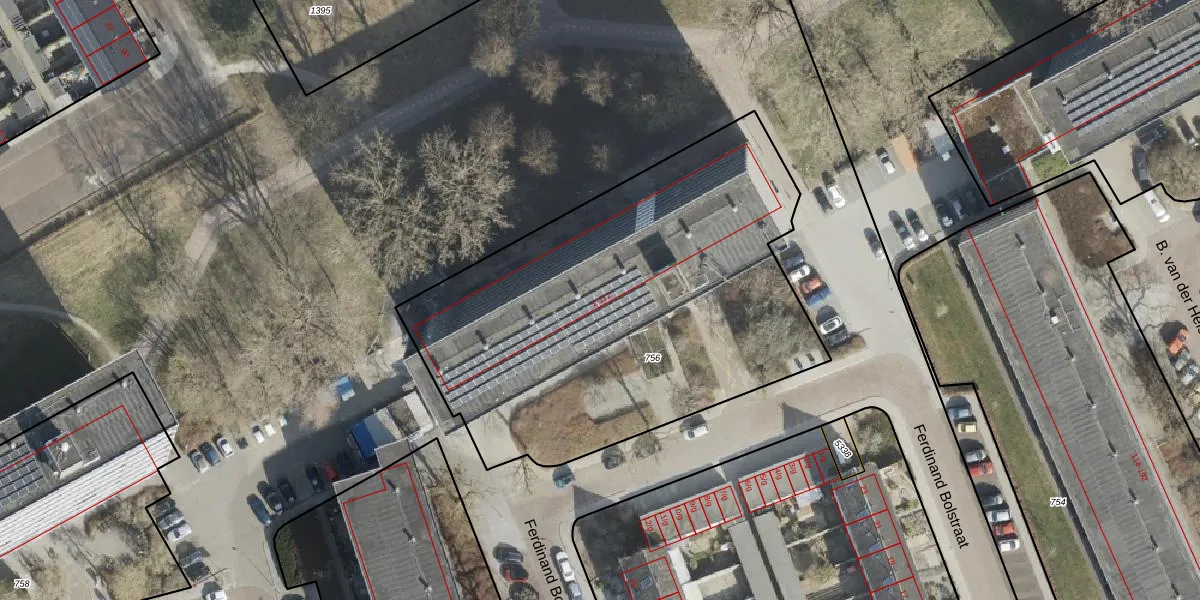 Het perceel waarop Ferdinand Bolstraat 8 staat heeft een oppervlakte van 2441 m². Dit is een zeer groot perceel. De perceeloppervlakte wordt geregistreerd door het Kadaster. Gedetailleerde informatie over de maten van dit perceel kunt u vinden in het rapport Kadastrale kaart met maatvoering van Ferdinand Bolstraat 8.