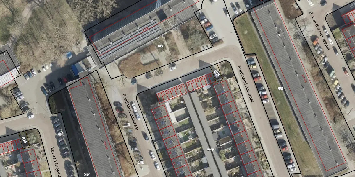 Het perceel waarop Ferdinand Bolstraat 8-GAR staat heeft een oppervlakte van 4945 m². Dit is een zeer groot perceel. De perceeloppervlakte wordt geregistreerd door het Kadaster. Gedetailleerde informatie over de maten van dit perceel kunt u vinden in het rapport Kadastrale kaart met maatvoering van Ferdinand Bolstraat 8-GAR.