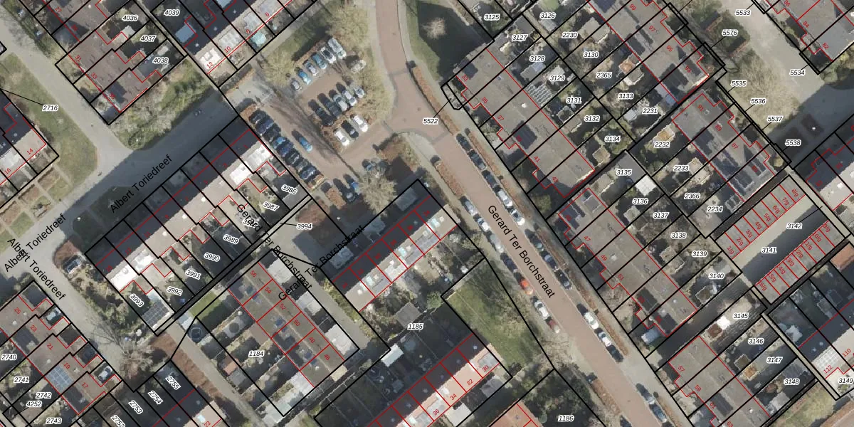Het perceel waarop Gerard Ter Borchstraat 34 staat heeft een oppervlakte van 1759 m². Dit is een zeer groot perceel. De perceeloppervlakte wordt geregistreerd door het Kadaster. Gedetailleerde informatie over de maten van dit perceel kunt u vinden in het rapport Kadastrale kaart met maatvoering van Gerard Ter Borchstraat 34.