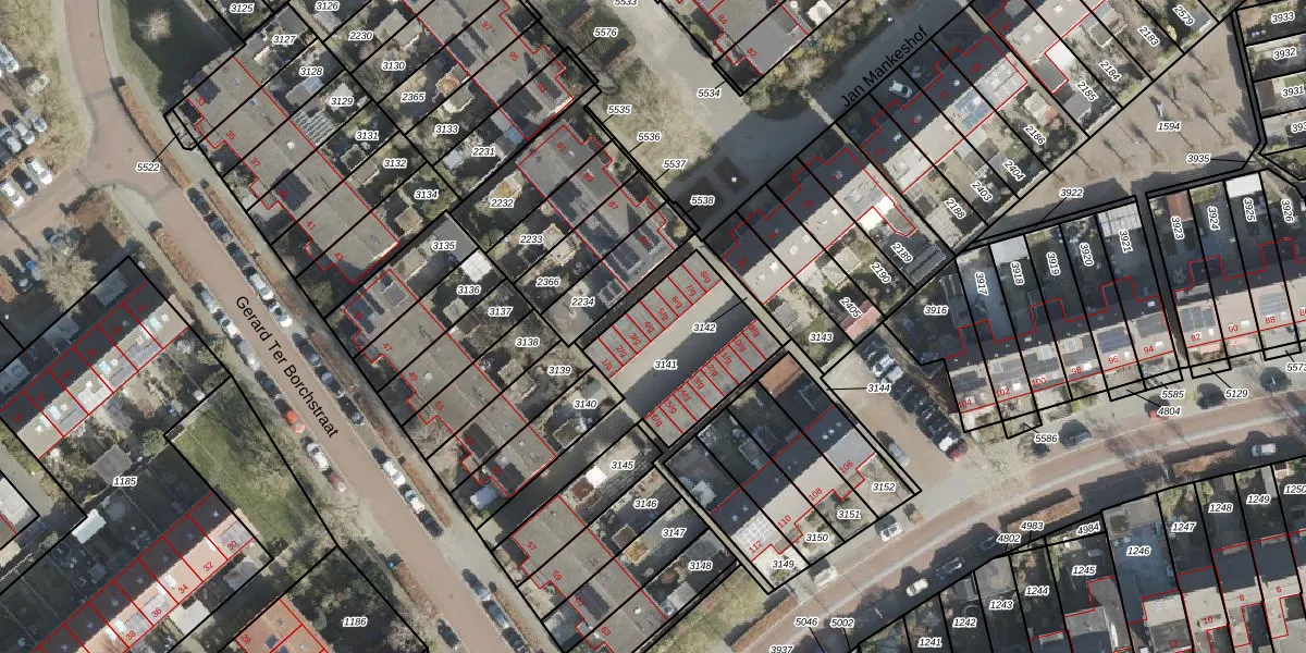 Het perceel waarop Gerard Ter Borchstraat 4-GAR staat heeft een oppervlakte van 590 m². Dit is een groot perceel. De perceeloppervlakte wordt geregistreerd door het Kadaster. Gedetailleerde informatie over de maten van dit perceel kunt u vinden in het rapport Kadastrale kaart met maatvoering van Gerard Ter Borchstraat 4-GAR.