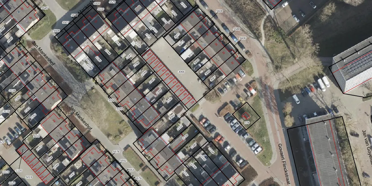 Het perceel waarop Govaert Flinckstraat 3-GAR staat heeft een oppervlakte van 613 m². Dit is een groot perceel. De perceeloppervlakte wordt geregistreerd door het Kadaster. Gedetailleerde informatie over de maten van dit perceel kunt u vinden in het rapport Kadastrale kaart met maatvoering van Govaert Flinckstraat 3-GAR.