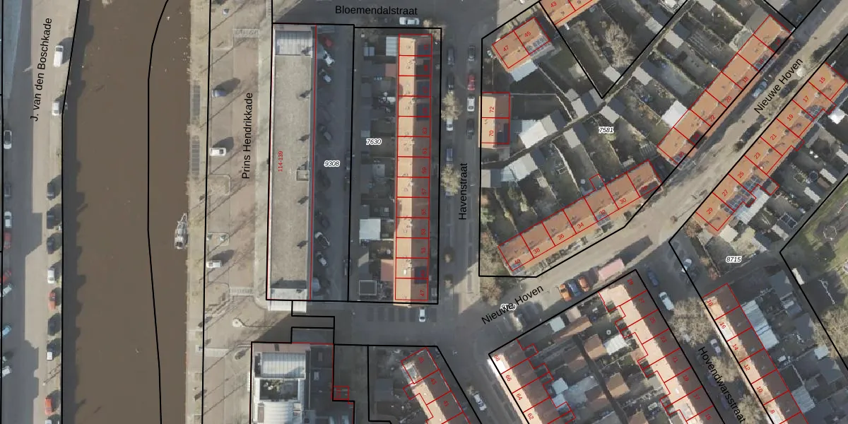 Het perceel waarop Havenstraat 55 staat heeft een oppervlakte van 1300 m². Dit is een zeer groot perceel. De perceeloppervlakte wordt geregistreerd door het Kadaster. Gedetailleerde informatie over de maten van dit perceel kunt u vinden in het rapport Kadastrale kaart met maatvoering van Havenstraat 55.