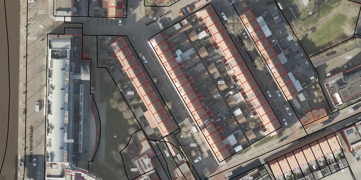 Het perceel waarop Havenstraat 56 staat heeft een oppervlakte van 3164 m². Dit is een zeer groot perceel. De perceeloppervlakte wordt geregistreerd door het Kadaster. Gedetailleerde informatie over de maten van dit perceel kunt u vinden in het rapport Kadastrale kaart met maatvoering van Havenstraat 56.
