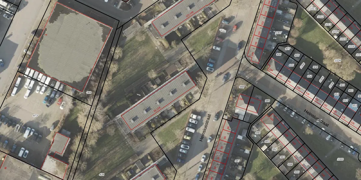 Het perceel waarop Heinsiusstraat 117 staat heeft een oppervlakte van 1,2 ha. Dit is een zeer groot perceel. De perceeloppervlakte wordt geregistreerd door het Kadaster. Gedetailleerde informatie over de maten van dit perceel kunt u vinden in het rapport Kadastrale kaart met maatvoering van Heinsiusstraat 117.
