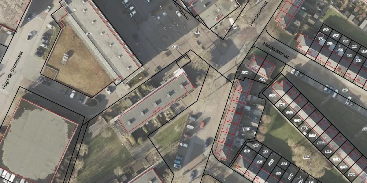 Het perceel waarop Heinsiusstraat 121 staat heeft een oppervlakte van 1,2 ha. Dit is een zeer groot perceel. De perceeloppervlakte wordt geregistreerd door het Kadaster. Gedetailleerde informatie over de maten van dit perceel kunt u vinden in het rapport Kadastrale kaart met maatvoering van Heinsiusstraat 121.