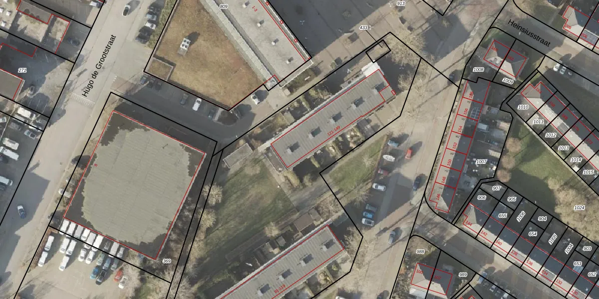 Het perceel waarop Heinsiusstraat 135 staat heeft een oppervlakte van 1,2 ha. Dit is een zeer groot perceel. De perceeloppervlakte wordt geregistreerd door het Kadaster. Gedetailleerde informatie over de maten van dit perceel kunt u vinden in het rapport Kadastrale kaart met maatvoering van Heinsiusstraat 135.