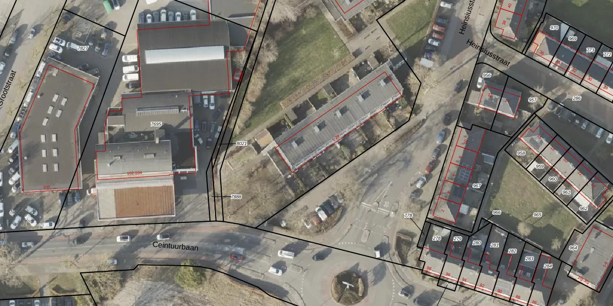 Het perceel waarop Heinsiusstraat 15 staat heeft een oppervlakte van 1,2 ha. Dit is een zeer groot perceel. De perceeloppervlakte wordt geregistreerd door het Kadaster. Gedetailleerde informatie over de maten van dit perceel kunt u vinden in het rapport Kadastrale kaart met maatvoering van Heinsiusstraat 15.