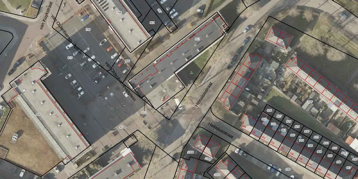 Het perceel waarop Heinsiusstraat 157 staat heeft een oppervlakte van 971 m². Dit is een groot perceel. De perceeloppervlakte wordt geregistreerd door het Kadaster. Gedetailleerde informatie over de maten van dit perceel kunt u vinden in het rapport Kadastrale kaart met maatvoering van Heinsiusstraat 157.