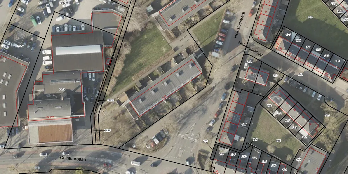 Het perceel waarop Heinsiusstraat 23 staat heeft een oppervlakte van 1,2 ha. Dit is een zeer groot perceel. De perceeloppervlakte wordt geregistreerd door het Kadaster. Gedetailleerde informatie over de maten van dit perceel kunt u vinden in het rapport Kadastrale kaart met maatvoering van Heinsiusstraat 23.
