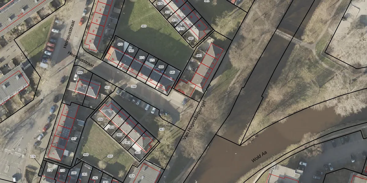 Het perceel waarop Heinsiusstraat 5-GAR staat heeft een oppervlakte van 585 m². Dit is een groot perceel. De perceeloppervlakte wordt geregistreerd door het Kadaster. Gedetailleerde informatie over de maten van dit perceel kunt u vinden in het rapport Kadastrale kaart met maatvoering van Heinsiusstraat 5-GAR.