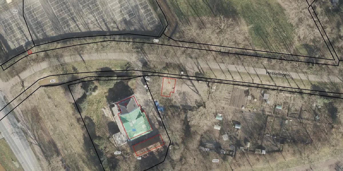 Het perceel waarop Hesselingen 21 staat heeft een oppervlakte van 8,8 ha. Dit is een zeer groot perceel. De perceeloppervlakte wordt geregistreerd door het Kadaster. Gedetailleerde informatie over de maten van dit perceel kunt u vinden in het rapport Kadastrale kaart met maatvoering van Hesselingen 21.