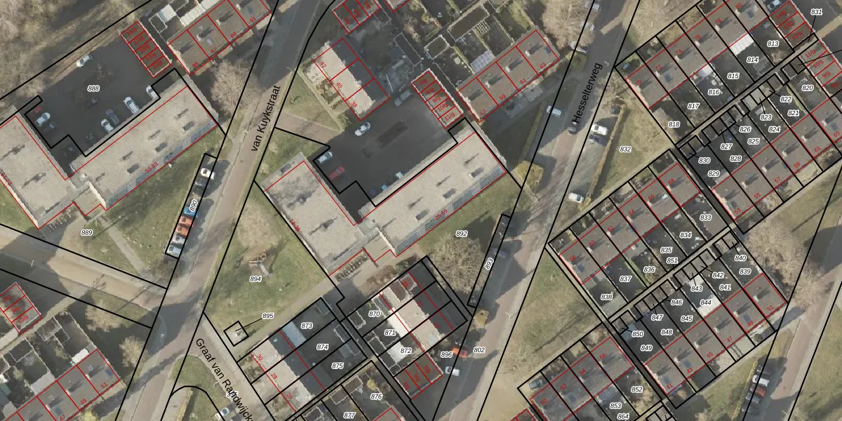 Het perceel waarop Hesselterweg 43 staat heeft een oppervlakte van 1492 m². Dit is een zeer groot perceel. De perceeloppervlakte wordt geregistreerd door het Kadaster. Gedetailleerde informatie over de maten van dit perceel kunt u vinden in het rapport Kadastrale kaart met maatvoering van Hesselterweg 43.