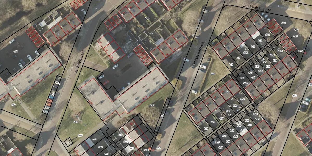 Het perceel waarop Hesselterweg 55 staat heeft een oppervlakte van 1492 m². Dit is een zeer groot perceel. De perceeloppervlakte wordt geregistreerd door het Kadaster. Gedetailleerde informatie over de maten van dit perceel kunt u vinden in het rapport Kadastrale kaart met maatvoering van Hesselterweg 55.