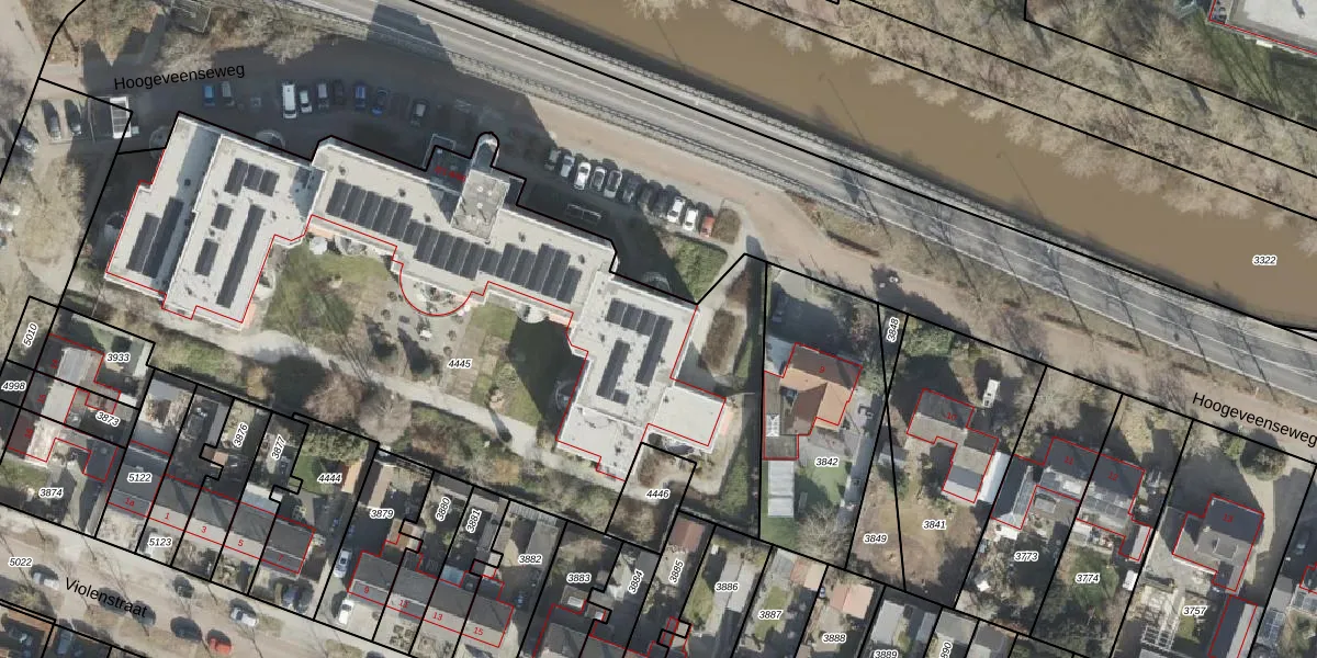 Het perceel waarop Hoogeveenseweg 8-46 staat heeft een oppervlakte van 4082 m². Dit is een zeer groot perceel. De perceeloppervlakte wordt geregistreerd door het Kadaster. Gedetailleerde informatie over de maten van dit perceel kunt u vinden in het rapport Kadastrale kaart met maatvoering van Hoogeveenseweg 8-46.