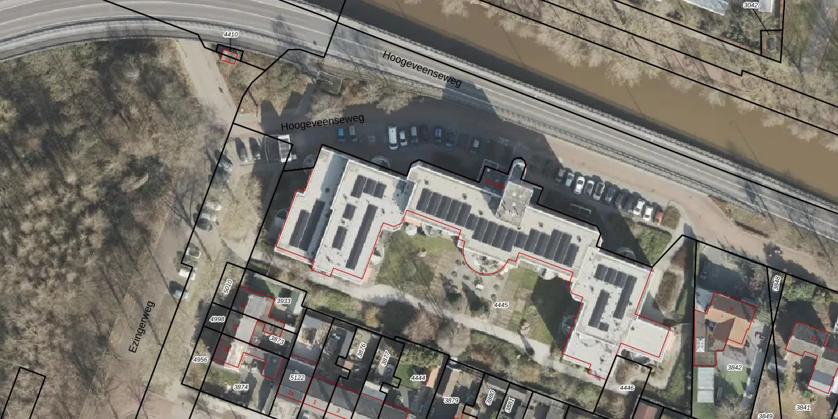 Het perceel waarop Hoogeveenseweg 8-64 staat heeft een oppervlakte van 4082 m². Dit is een zeer groot perceel. De perceeloppervlakte wordt geregistreerd door het Kadaster. Gedetailleerde informatie over de maten van dit perceel kunt u vinden in het rapport Kadastrale kaart met maatvoering van Hoogeveenseweg 8-64.