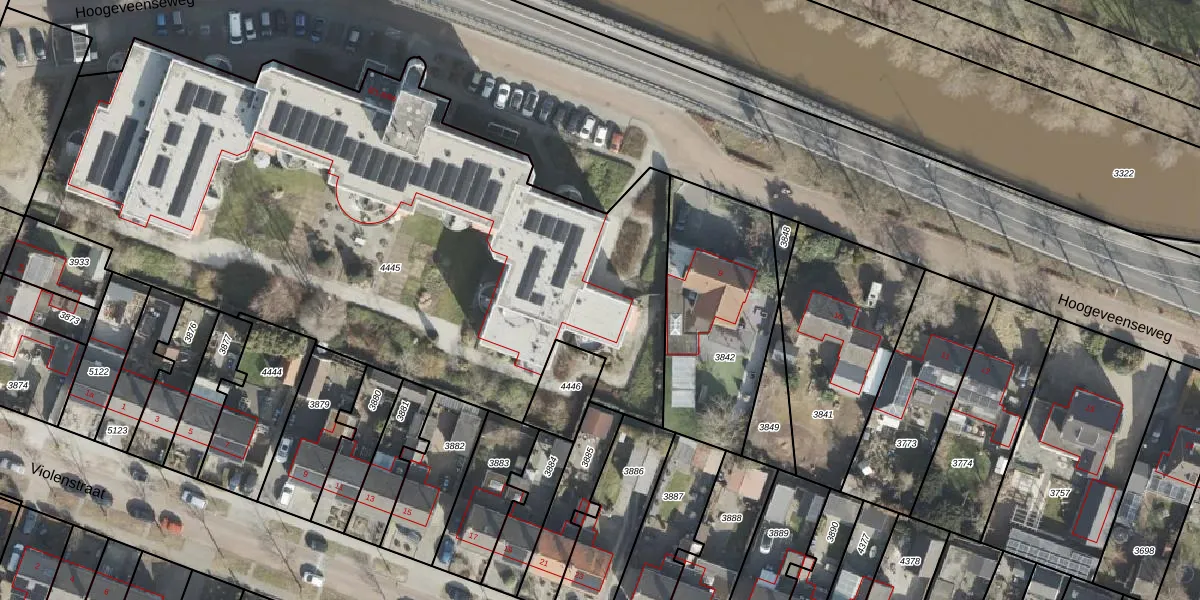 Het perceel waarop Hoogeveenseweg 8-11 staat heeft een oppervlakte van 4082 m². Dit is een zeer groot perceel. De perceeloppervlakte wordt geregistreerd door het Kadaster. Gedetailleerde informatie over de maten van dit perceel kunt u vinden in het rapport Kadastrale kaart met maatvoering van Hoogeveenseweg 8-11.