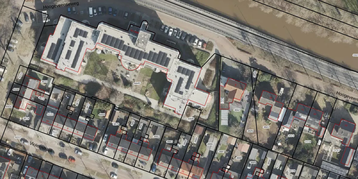 Het perceel waarop Hoogeveenseweg 8-25 staat heeft een oppervlakte van 4082 m². Dit is een zeer groot perceel. De perceeloppervlakte wordt geregistreerd door het Kadaster. Gedetailleerde informatie over de maten van dit perceel kunt u vinden in het rapport Kadastrale kaart met maatvoering van Hoogeveenseweg 8-25.