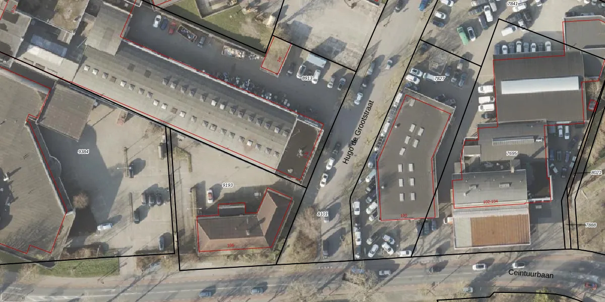 Het perceel waarop Hugo de Grootstraat 1-B staat heeft een oppervlakte van 4556 m². Dit is een zeer groot perceel. De perceeloppervlakte wordt geregistreerd door het Kadaster. Gedetailleerde informatie over de maten van dit perceel kunt u vinden in het rapport Kadastrale kaart met maatvoering van Hugo de Grootstraat 1-B.