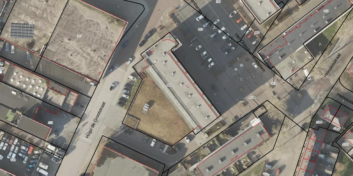 Het perceel waarop Hugo de Grootstraat 44 staat heeft een oppervlakte van 1908 m². Dit is een zeer groot perceel. De perceeloppervlakte wordt geregistreerd door het Kadaster. Gedetailleerde informatie over de maten van dit perceel kunt u vinden in het rapport Kadastrale kaart met maatvoering van Hugo de Grootstraat 44.