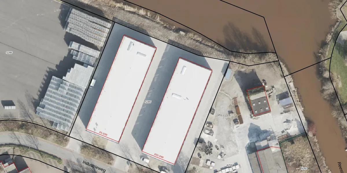 Het perceel waarop Industrieweg 2-27 staat heeft een oppervlakte van 5020 m². Dit is een zeer groot perceel. De perceeloppervlakte wordt geregistreerd door het Kadaster. Gedetailleerde informatie over de maten van dit perceel kunt u vinden in het rapport Kadastrale kaart met maatvoering van Industrieweg 2-27.